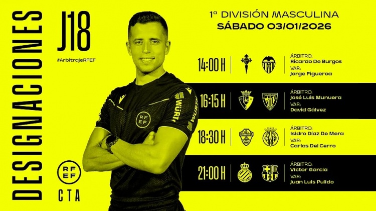 1月2日讯 在圣诞假期后,本周末西甲联赛战火重燃,西班牙足协官方公布了当地时代1月3日开球的四场比赛裁判安排,其中,维克托·加西亚司法巴萨客战西班经纪东谈主的德比战。