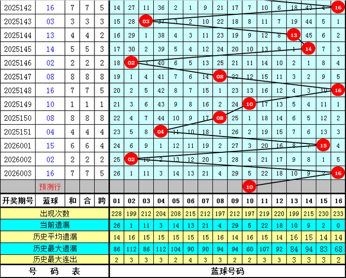 蓝球号码分析:上期蓝球为16,开出1路号码,蓝球最近10期012路比为1:4:5,最近30期012路比为12:10:8,最近100期012路比为30:36:34,本期蓝球看好1路号码,四码蓝球参考04、07、10、16。