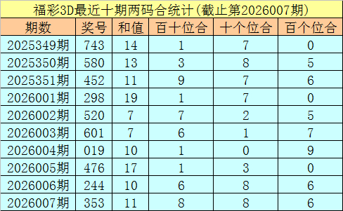 福彩3D第2026008期两位合分析: